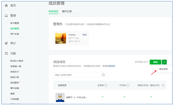 2)將我方小程序支持人員,設(shè)置為小程序開(kāi)發(fā)者,并提供企業(yè)微信的參數(shù)