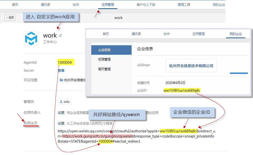 回調(diào)地址:https://work.gungsoft.cn/gungho/qyweix