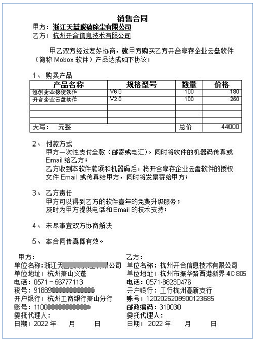 • 有開合信息公司的技術支持,幫助定義合同打印功能