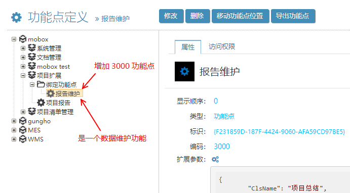 • 顯示頁簽 ,選擇了前面定義過的 3000功能點 “報告維護”